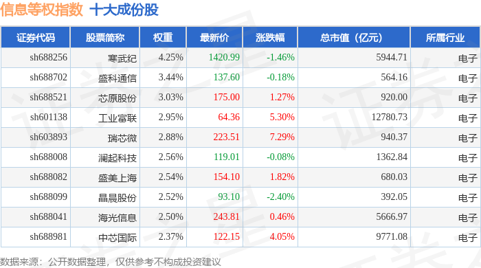 信息等权(000077)指数十大成份股详情如下: