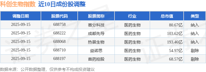 近10日内科创生物(000683)指数成份股做了调整,新纳入了3只股票,剔除了2只股票。
