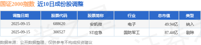 近10日内国证2000(399303)指数成份股做了调整,新纳入了1只股票,剔除了1只股票。