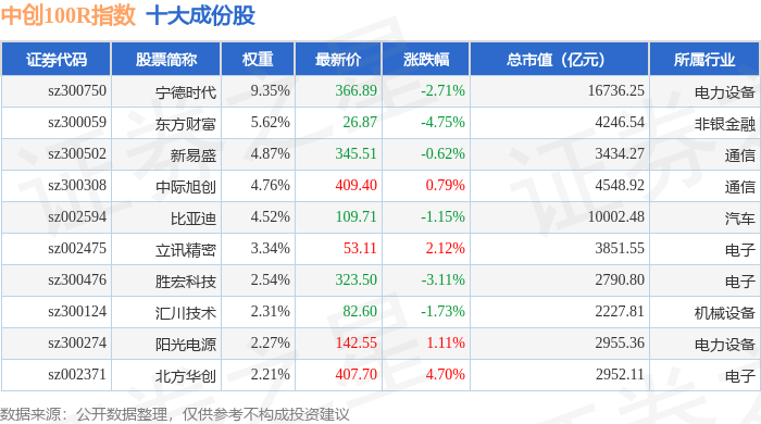 证券之星消息,9月18日,中创100R(399611)指数报收于3153.23点,跌0.89%,成交4048.83亿元,换手率2.89%。当日该指数成份股中,上涨的有28家,三花智控以8.71%的涨幅领涨,下跌的有72家,长城证券以6.14%的跌幅领跌。