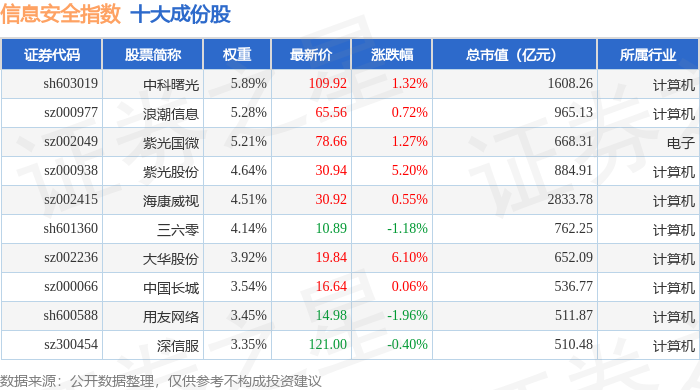 资金流向方面,信息安全(399994)指数成份股当日主力资金净流出合计21.53亿元,游资资金净流出合计6.61亿元,散户资金净流入合计28.14亿元。成份股资金流向详情见下表: