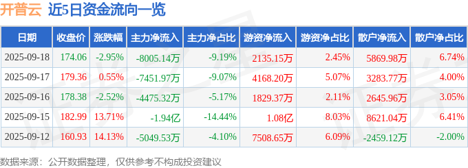 证券之星消息,截至2025年9月18日收盘,开普云(688228)报收于174.06元,下跌2.95%,换手率7.21%,成交量4.87万手,成交额8.71亿元。