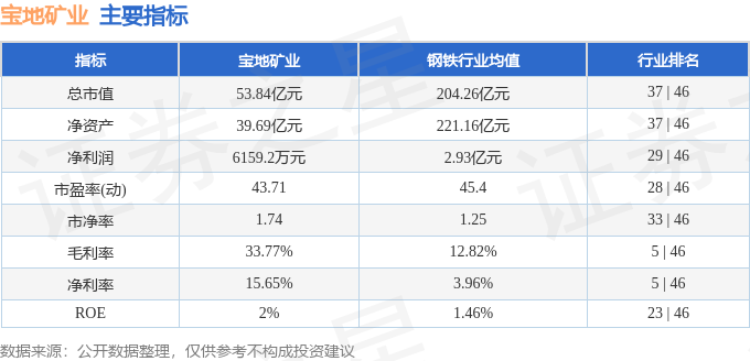 宝地矿业2025年中报显示,公司主营收入7.21亿元,同比上升23.65%;归母净利润6159.2万元,同比下降40.11%;扣非净利润5405.39万元,同比下降41.2%;其中2025年第二季度,公司单季度主营收入4.17亿元,同比上升22.82%;单季度归母净利润4155.0万元,同比下降33.55%;单季度扣非净利润3594.51万元,同比下降35.62%;负债率41.0%,投资收益568.61万元,财务费用295.13万元,毛利率33.77%。宝地矿业(601121)主营业务:铁矿石的开采、选矿加工和铁精粉销售。