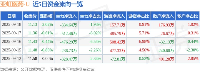 证券之星消息,截至2025年9月18日收盘,亚虹医药(688176)报收于11.13元,下跌2.02%,换手率3.51%,成交量15.29万手,成交额1.74亿元。
