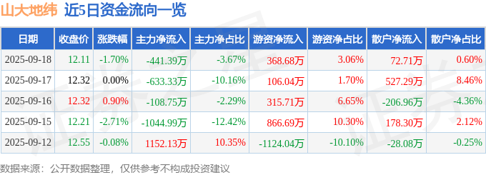 证券之星消息,截至2025年9月18日收盘,山大地纬(688579)报收于12.11元,下跌1.7%,换手率2.44%,成交量9.75万手,成交额1.2亿元。