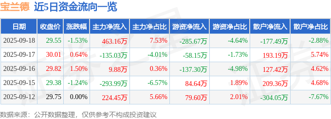 9月18日的资金流向数据方面,主力资金净流入463.16万元,占总成交额7.53%,游资资金净流出285.67万元,占总成交额4.64%,散户资金净流出177.49万元,占总成交额2.88%。