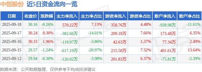 证券之星消息,截至2025年9月18日收盘,中创股份(688695)报收于30.16元,下跌0.26%,换手率5.06%,成交量2.6万手,成交额8000.98万元。