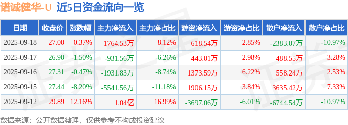 9月18日的资金流向数据方面,主力资金净流入1764.53万元,占总成交额8.12%,游资资金净流入618.54万元,占总成交额2.85%,散户资金净流出2383.07万元,占总成交额10.97%。