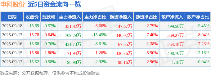 证券之星消息,截至2025年9月18日收盘,申科股份(002633)报收于15.69元,下跌0.57%,换手率2.24%,成交量3.34万手,成交额5283.65万元。