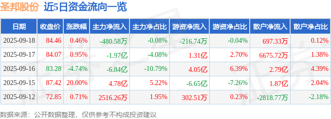 9月18日的资金流向数据方面,主力资金净流出480.58万元,占总成交额0.08%,游资资金净流出216.74万元,占总成交额0.04%,散户资金净流入697.33万元,占总成交额0.12%。