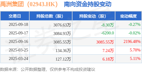 证券之星消息,9月18日南向资金减持8.3万股禹洲集团(02943.HK)。近5个交易日中,获南向资金增持的有3天,累计净增持3090.05万股。近20个交易日中,获南向资金减持的有5天,累计净减持8.71亿股。截至目前,南向资金持有禹洲集团(02943.HK)3076.63万股,占公司已发行普通股的2.06%。
