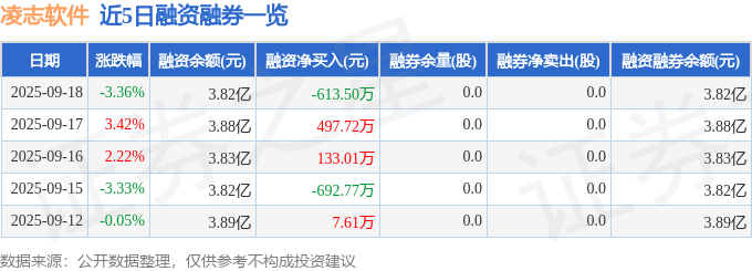 凌志软件融资融券信息显示,融资方面,当日融资买入6420.3万元,融资偿还7033.8万元,融资净偿还613.5万元。融券方面,融券卖出0.0股,融券偿还0.0股,融券余量0.0股,融券余额0.0万元。融资融券余额3.82亿元。