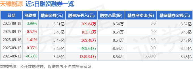天壕能源融资融券信息显示,融资方面,当日融资买入2688.84万元,融资偿还2319.0万元,融资净买入369.84万元,连续3日净买入累计783.06万元。融券方面,融券卖出0.0股,融券偿还0.0股,融券余量8.54万股,融券余额47.31万元。融资融券余额3.52亿元。