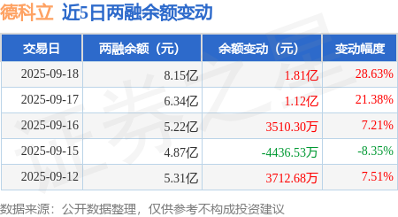 证券之星消息,9月18日,德科立(688205)融资买入5.39亿元,融资偿还3.58亿元,融资净买入1.81亿元,融资余额8.15亿元,当日融资净买入排名第24,近3个交易日已连续净买入累计3.28亿元,近20个交易日中有11个交易日出现融资净买入。