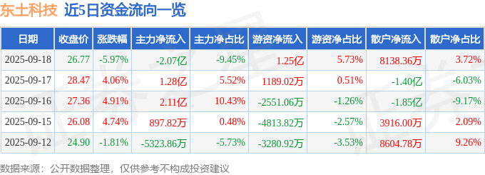 证券之星消息,截至2025年9月18日收盘,东土科技(300353)报收于26.77元,下跌5.97%,换手率14.81%,成交量79.55万手,成交额21.87亿元。