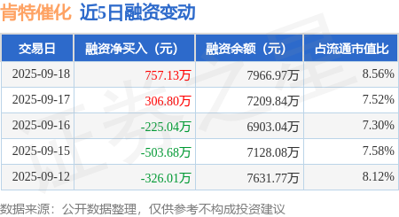 证券之星消息,9月18日,肯特催化(603120)融资买入2143.62万元,融资偿还1386.49万元,融资净买入757.13万元,融资余额7966.97万元。