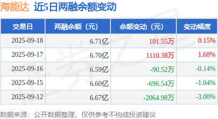 证券之星消息,9月18日,海能达(002583)融资买入6560.67万元,融资偿还6464.65万元,融资净买入96.01万元,融资余额6.69亿元。
