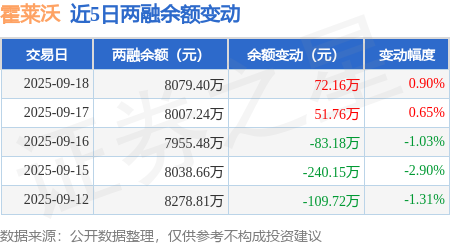 证券之星消息,9月18日,霍莱沃(688682)融资买入1040.41万元,融资偿还968.25万元,融资净买入72.16万元,融资余额8079.4万元。