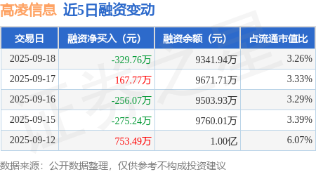 证券之星消息,9月18日,高凌信息(688175)融资买入637.46万元,融资偿还967.22万元,融资净卖出329.76万元,融资余额9341.94万元,近20个交易日中有13个交易日出现融资净买入。