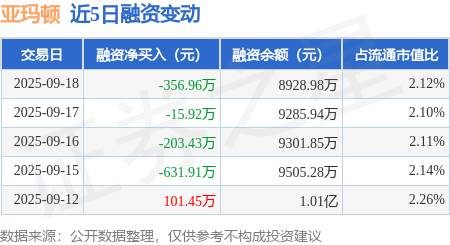 证券之星消息,9月18日,亚玛顿(002623)融资买入1242.4万元,融资偿还1599.36万元,融资净卖出356.96万元,融资余额8928.98万元。