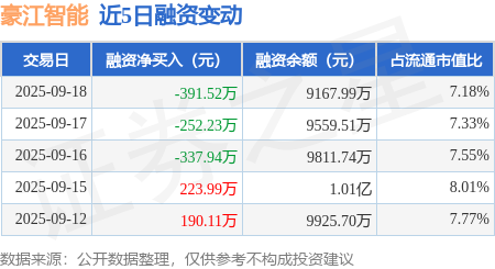 证券之星消息,9月18日,豪江智能(301320)融资买入851.82万元,融资偿还1243.34万元,融资净卖出391.52万元,融资余额9167.99万元,近20个交易日中有13个交易日出现融资净买入。