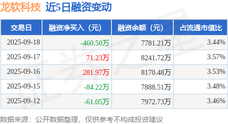 证券之星消息,9月18日,龙软科技(688078)融资买入456.46万元,融资偿还916.97万元,融资净卖出460.5万元,融资余额7781.21万元。