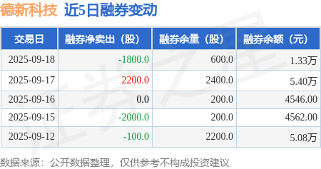 证券之星消息,9月18日,德新科技(603032)融资买入2413.32万元,融资偿还2929.25万元,融资净卖出515.93万元,融资余额1.24亿元。
