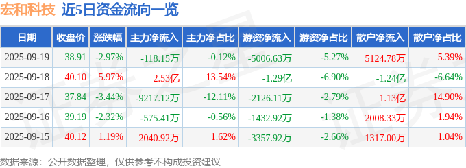 证券之星消息,截至2025年9月19日收盘,宏和科技(603256)报收于38.91元,下跌2.97%,换手率2.78%,成交量24.44万手,成交额9.51亿元。
