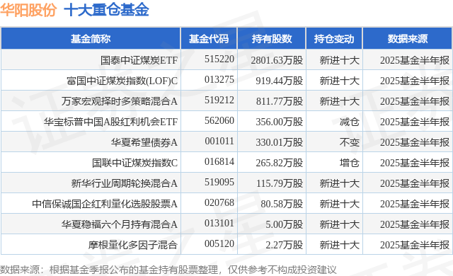 重仓华阳股份的前十大公募基金请见下表: