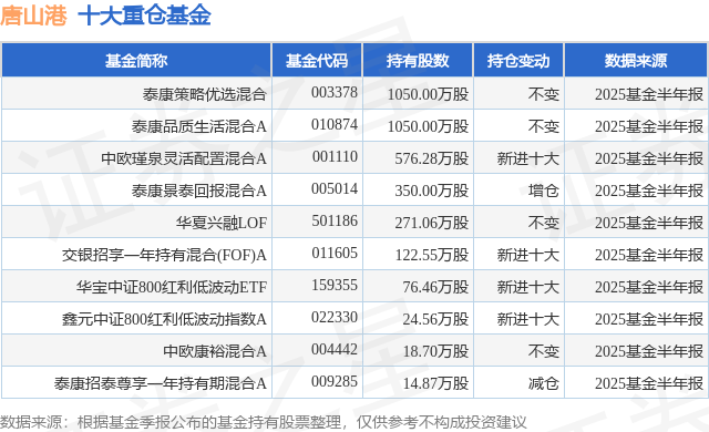 重仓唐山港的前十大公募基金请见下表: