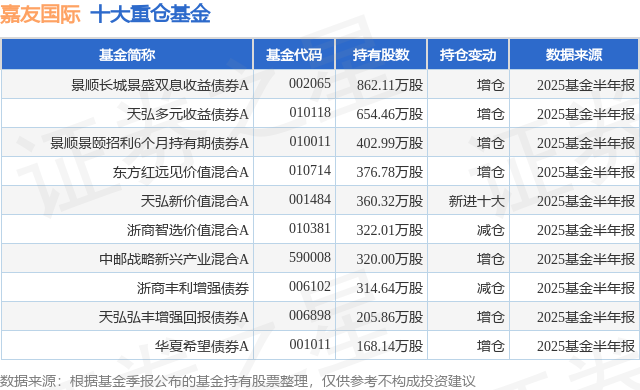 根据2025基金半年报公募基金重仓股数据,重仓该股的公募基金共33家,其中持有数量最多的公募基金为景顺长城基金的景顺长城景盛双息收益债券A。景顺长城景盛双息收益债券A目前规模为105.57亿元,最新净值1.206(9月18日),较上一交易日下跌0.58%,近一年上涨10.95%。该公募基金现任基金经理为李怡文 邹立虎 李曾卓卓。李怡文在任的基金产品包括:景顺长城景颐双利债券A,管理时间为2021年4月30日至今,期间收益率为23.32%;景顺景颐招利6个月持有期债券A,管理时间为2021年4月30日至今,期间收益率为31.75%;景顺长城安泽回报一年持有混合A,管理时间为2021年4月30日至今,期间收益率为39.36%;景顺景颐嘉利6个月持有期债券A,管理时间为2021年6月16日至今,期间收益率为21.5%。邹立虎在任的基金产品包括:景顺长城安盈回报一年持有混合A,管理时间为2021年11月16日至今,期间收益率为37.85%;景顺景颐招利6个月持有期债券A,管理时间为2022年3月12日至今,期间收益率为24.28%;景顺长城华城稳健6个月持有期混合A,管理时间为2022年3月12日至今,期间收益率为27.49%。