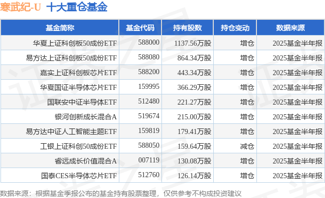 重仓寒武纪-U的前十大公募基金请见下表: