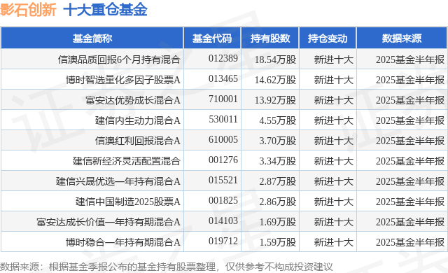 重仓影石创新的前十大公募基金请见下表: