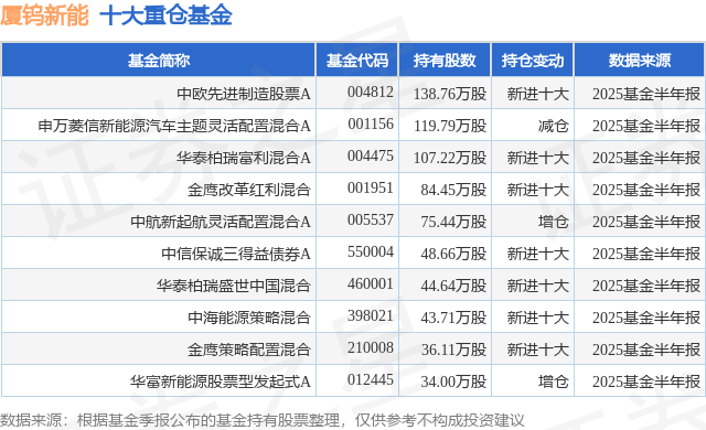 根据2025基金半年报公募基金重仓股数据,重仓该股的公募基金共48家,其中持有数量最多的公募基金为中欧基金的中欧先进制造股票A。中欧先进制造股票A目前规模为13.31亿元,最新净值2.8635(9月18日),较上一交易日下跌1.26%,近一年上涨52.14%。该公募基金现任基金经理为卢纯青。卢纯青在任的基金产品包括:中欧研究精选混合A,管理时间为2021年3月24日至今,期间收益率为-12.0%;中欧瑞丰灵活配置混合(LOF)A,管理时间为2021年8月11日至今,期间收益率为-1.74%。