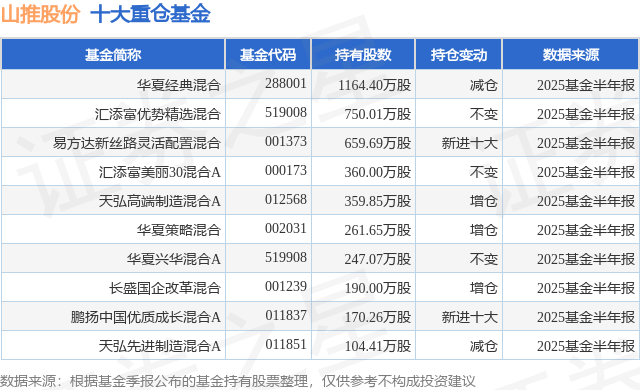 根据2025基金半年报公募基金重仓股数据,重仓该股的公募基金共28家,其中持有数量最多的公募基金为华夏基金的华夏经典混合。华夏经典混合目前规模为19.59亿元,最新净值2.206(9月18日),较上一交易日下跌1.34%,近一年上涨34.27%。该公募基金现任基金经理为刘心任。刘心任在任的基金产品包括:华夏翔阳两年定开混合,管理时间为2024年1月4日至今,期间收益率为40.78%;华夏臻选回报混合A,管理时间为2025年8月12日至今,期间收益率为7.56%;华夏信选混合A,管理时间为2025年9月12日至今,期间收益率为0.0%。