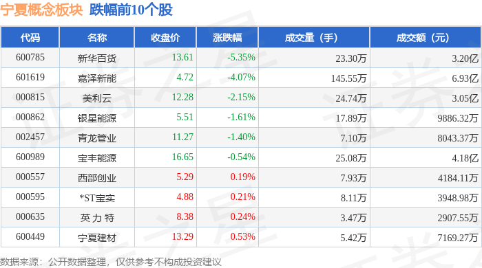 从资金流向上来看,当日宁夏概念板块主力资金净流出1.28亿元,游资资金净流入2466.15万元,散户资金净流入1.03亿元。宁夏概念板块个股资金流向见下表: