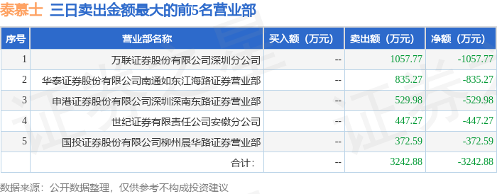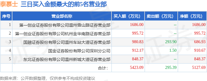 证券之星消息,沪深交易所2025年9月19日公布的交易公开信息显示,泰慕士(001234)因连续三个交易日内,涨幅偏离值累计达到20%的证券登上龙虎榜。此次是近5个交易日内第2次上榜。