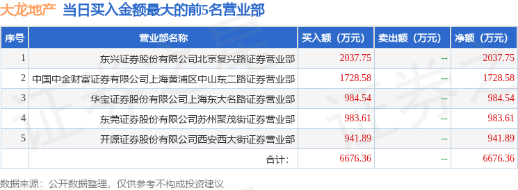 证券之星消息,沪深交易所2025年9月19日公布的交易公开信息显示,大龙地产(600159)因有价格涨跌幅限制的日收盘价格涨幅偏离值达到7%的前五只证券登上龙虎榜。此次是近5个交易日内第2次上榜。