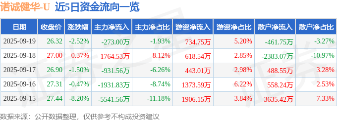 证券之星消息,截至2025年9月19日收盘,诺诚健华(688428)报收于26.32元,下跌2.52%,换手率1.97%,成交量5.28万手,成交额1.41亿元。