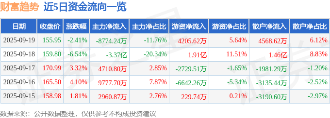 证券之星消息,截至2025年9月19日收盘,财富趋势(688318)报收于155.95元,下跌2.41%,换手率1.86%,成交量4.75万手,成交额7.46亿元。
