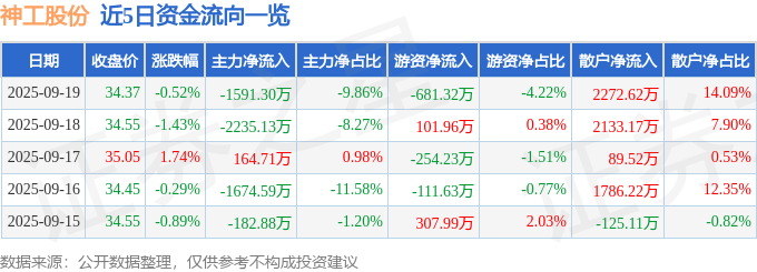 9月19日的资金流向数据方面,主力资金净流出1591.3万元,占总成交额9.86%,游资资金净流出681.32万元,占总成交额4.22%,散户资金净流入2272.62万元,占总成交额14.09%。