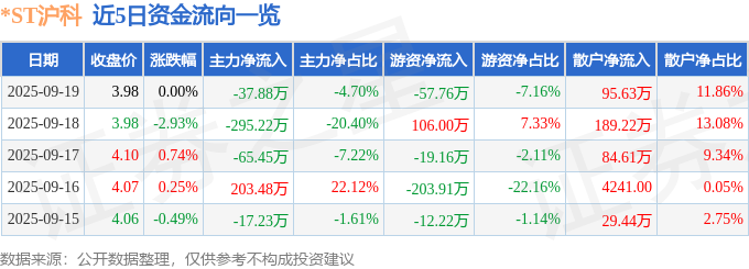 证券之星消息,截至2025年9月19日收盘,*ST沪科(600608)报收于3.98元,上涨0.0%,换手率0.64%,成交量2.03万手,成交额806.38万元。
