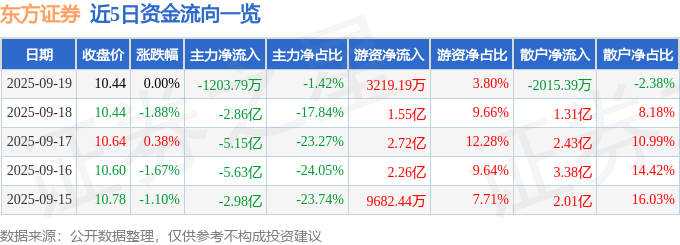 证券之星消息,截至2025年9月19日收盘,东方证券(600958)报收于10.44元,上涨0.0%,换手率1.08%,成交量80.87万手,成交额8.47亿元。