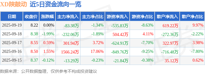 证券之星消息,截至2025年9月19日收盘,XD陕鼓动(601369)报收于8.22元,上涨0.0%,换手率0.44%,成交量7.56万手,成交额6210.24万元。