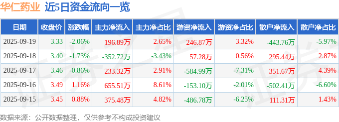证券之星消息,截至2025年9月19日收盘,华仁药业(300110)报收于3.33元,下跌2.06%,换手率1.87%,成交量22.12万手,成交额7430.02万元。