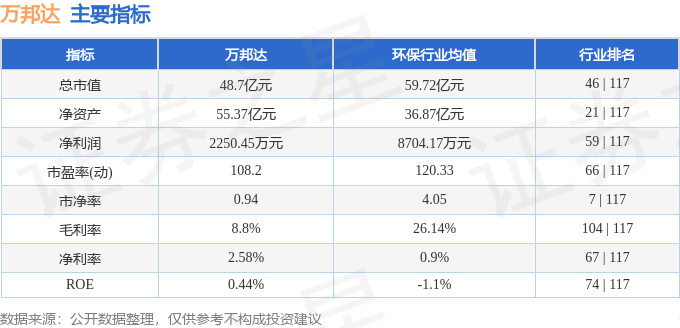万邦达2025年中报显示,公司主营收入11.86亿元,同比下降5.64%;归母净利润2250.45万元,同比上升0.07%;扣非净利润1561.95万元,同比上升967.74%;其中2025年第二季度,公司单季度主营收入5.53亿元,同比上升0.09%;单季度归母净利润288.8万元,同比上升241.71%;单季度扣非净利润-129.36万元,同比上升88.29%;负债率33.5%,投资收益1012.26万元,财务费用411.83万元,毛利率8.8%。万邦达(300055)主营业务:包括新材料的生产与销售、危固废处理、水务工程及运营、新能源综合利用等,致力于通过工程总承包、投资、运营和技术咨询等方式为用户提供环境系统整体解决方案,已逐步形成南材料、北固废、西水务的产业格局。