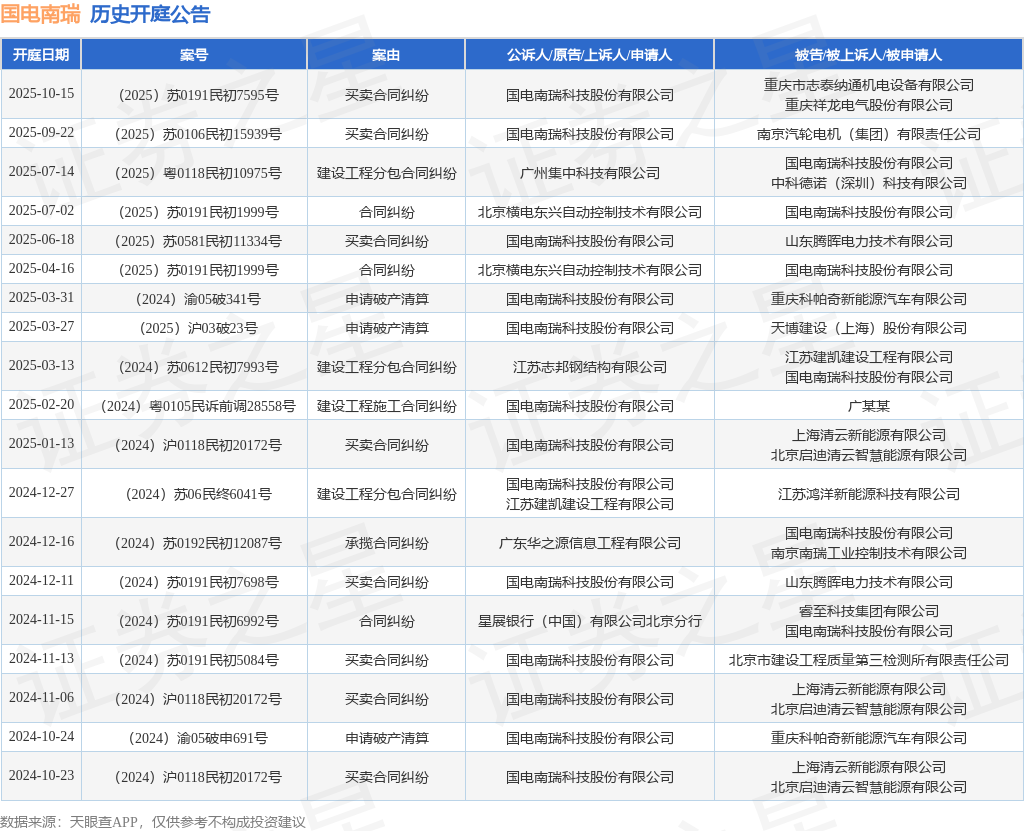 证券之星消息,根据天眼查APP显示,近日公布了一则国电南瑞科技股份有限公司作为原告/上诉人的开庭公告,详细内容如下: