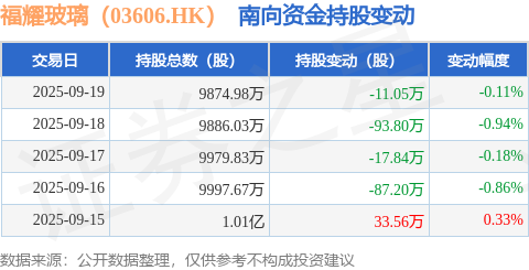 证券之星消息,9月19日南向资金减持11.05万股福耀玻璃(03606.HK)。近5个交易日中,获南向资金减持的有4天,累计净减持176.33万股。近20个交易日中,获南向资金减持的有13天,累计净减持11.79万股。截至目前,南向资金持有福耀玻璃(03606.HK)9874.98万股,占公司已发行普通股的16.27%。