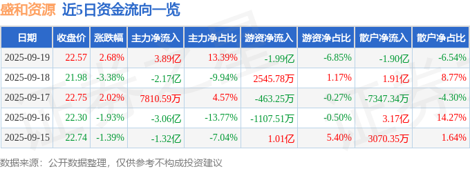 证券之星消息,截至2025年9月19日收盘,盛和资源(600392)报收于22.57元,上涨2.68%,换手率7.28%,成交量127.53万手,成交额29.02亿元。