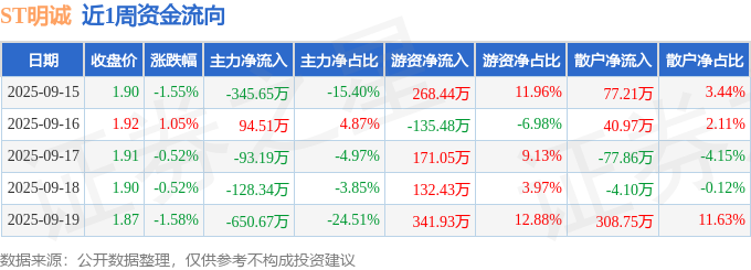 资金流向数据方面,本周ST明诚主力资金合计净流出1123.34万元,游资资金合计净流入778.37万元,散户资金合计净流入344.97万元。本周资金流向一览见下表: